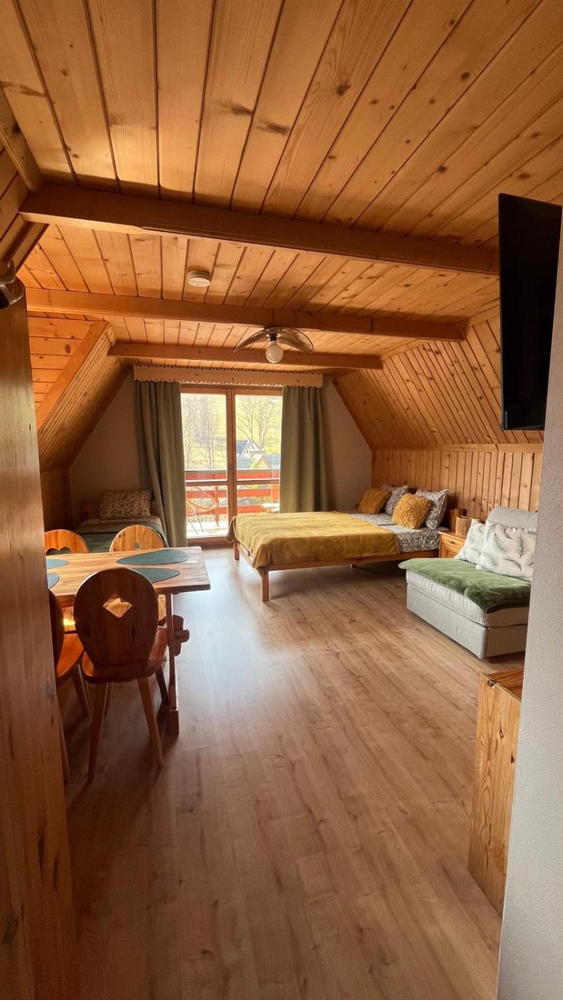 Pokój trzyosobowy z balkonem. The triple room provides a tea and coffee maker, a dining area, a balcony with mountain views as well as a private bathroom featuring a shower. The unit offers 2 beds. Pokój Trzyosobowy - 3 osobowy. Powierzchnia pokoju ok.: 22 mkw. ;