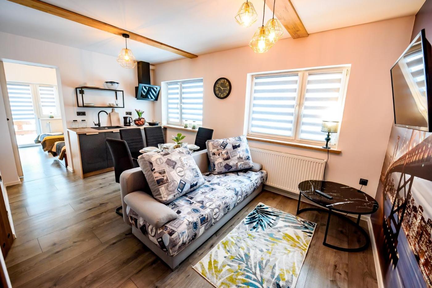 Apartament z 1 sypialnią. This apartment comes with 1 bedroom, a kitchenette and 1 bathroom with a shower. In the kitchenette, guests will find a stovetop, a refrigerator and kitchenware. Boasting a balcony with garden views, this apartment also features a tea and coffee maker and a flat-screen TV. The unit has 2 beds. Apartament - 3 osobowy. Powierzchnia pokoju ok.: 20 mkw. ;