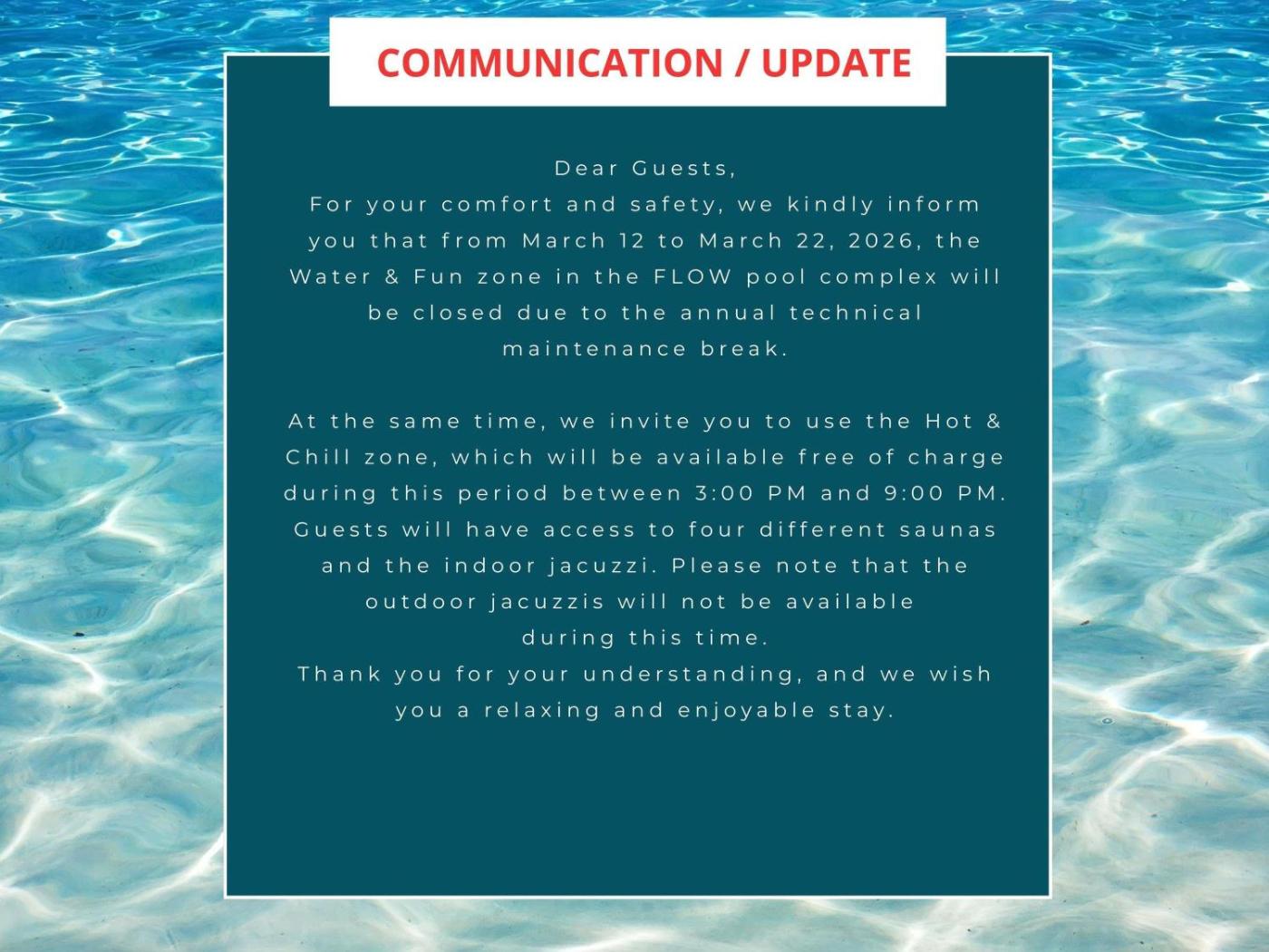 Dostęp do basenu Flow podlega dodatkowej opłacie, zgodnie z aktualnym cennikiem.